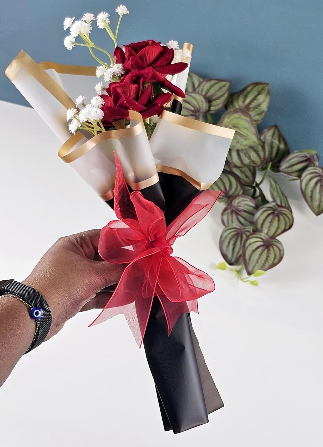• Package include as : 1 pcs artificial rose bouquet With White babys breath / MATERIAL : Fabric / COLOR : RED / WASHABLE : NO / Size:- 33.2 Cm (13 Inch)