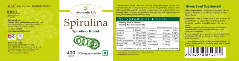• Ayurvedic Life Spirulina Tablet is a multi-nutrient-rich superfood loaded with vitamins.