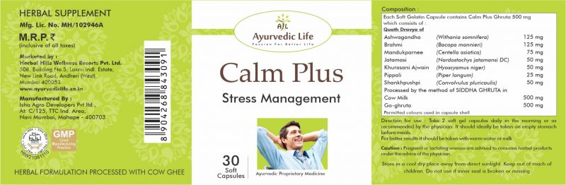 • All the herbs in Calm Plus capsule by Ayurvedic Life promotes relaxation, without drowsiness. manages stress and anxiety. May help manage depression-related symptoms.