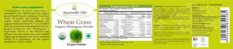 Ayurvedic Life wheatgrass powder – Green food supplement – 25 gm