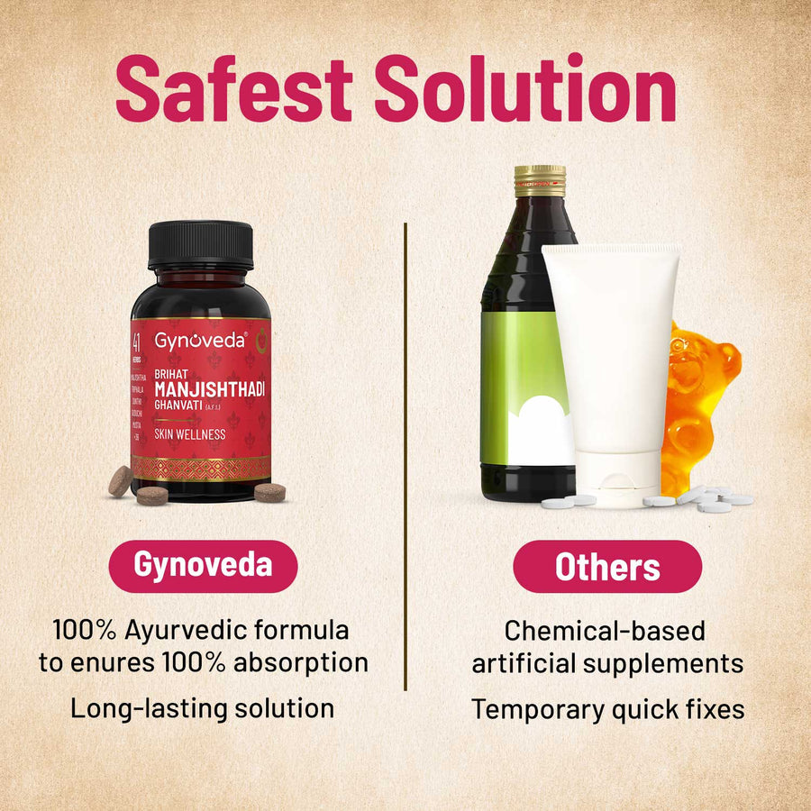 - Gynoveda Brihat Manjishthadi Ghanvati Tablet is formulated using 41 ayurvedic herbs to help purify the blood and eliminate toxins from the body.