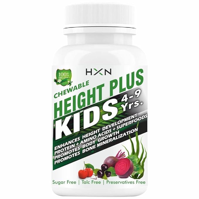 HXN Height Increase Medicine For Kids With Essential Amino Acid, Vitamins & Superfood To Help Long Bone Mineralisation, And Growth - 60 Tablets