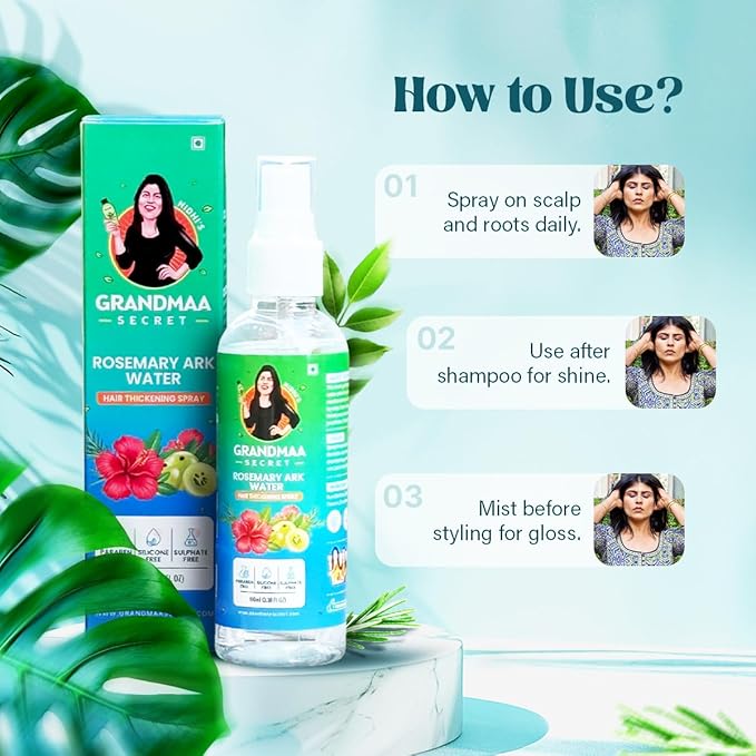 Nidhi’s Grandmaa Secret Rosemary Water Ark | Hair Thickening Mist, Natural Rosemary Water Spray for Thick Hair - 100 Ml