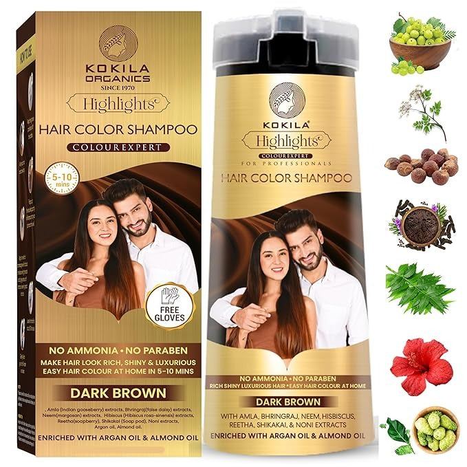 Kokila Hair Color Shampoo for Men & Women Dark Brown - 400 ml