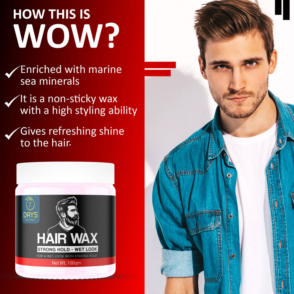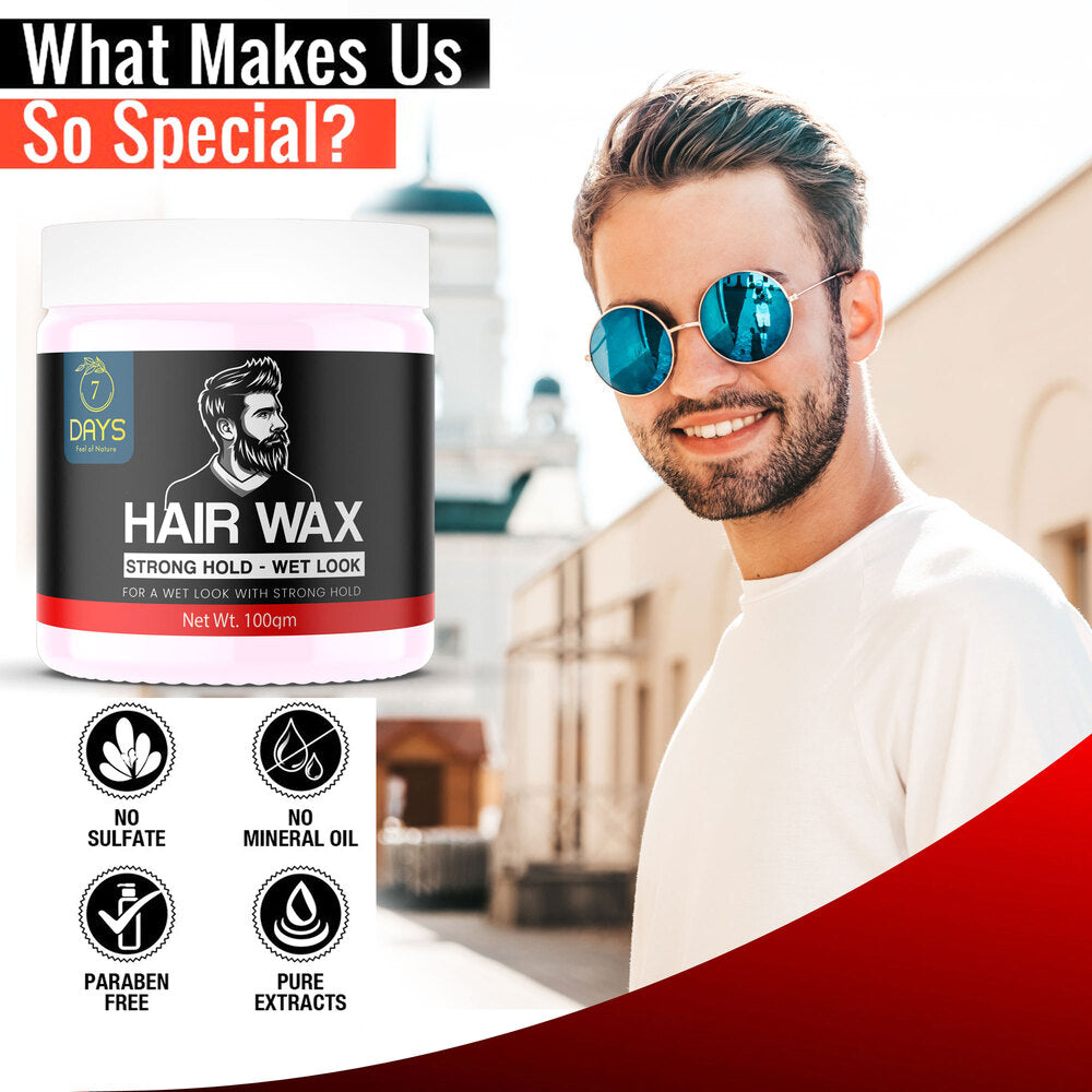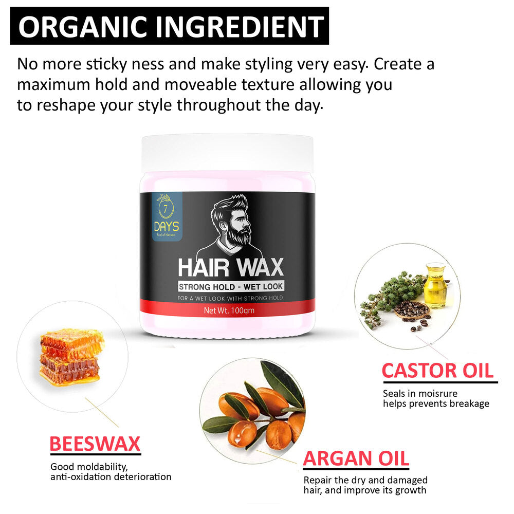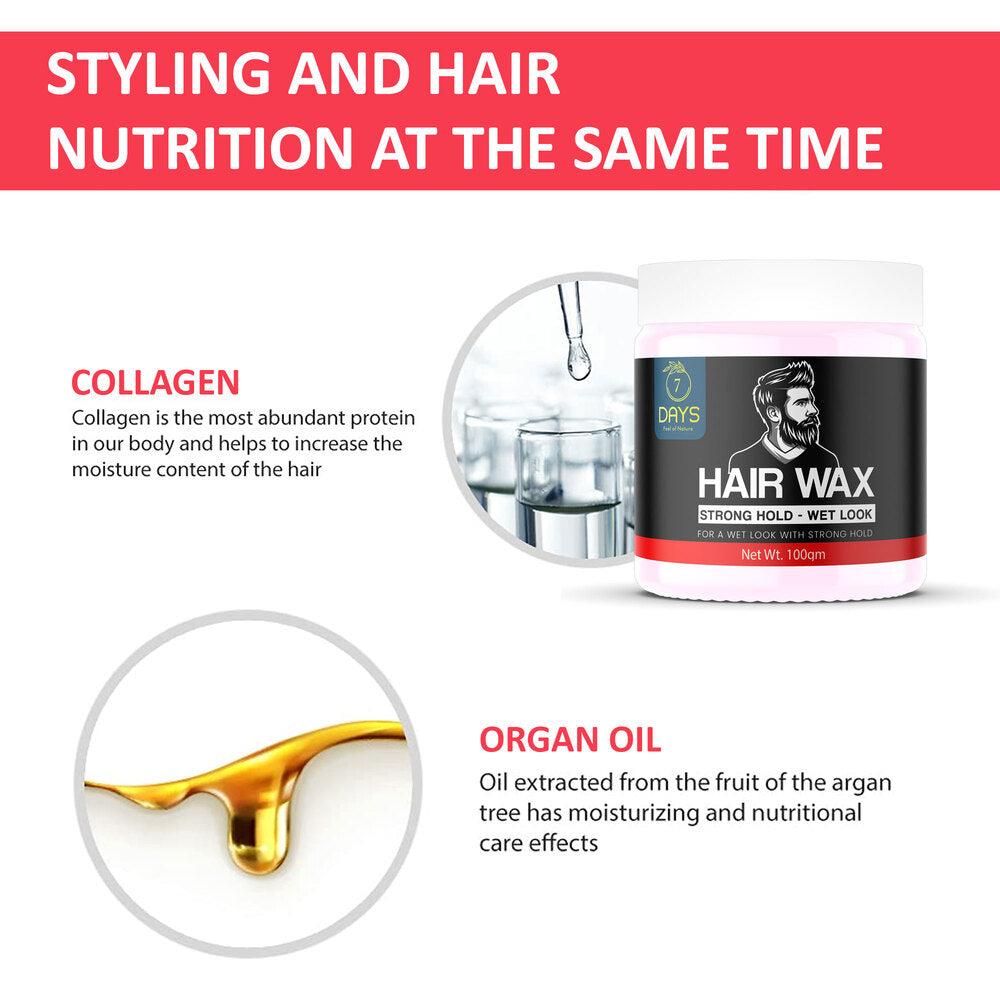 - The 7 Days Hair Wax for Men is designed to provide artistic styling as well as nourish hair roots, improve hair texture & form a layer of protection on your hair to prevent hair fall, hair dryness & split ends. What more can you ask for?