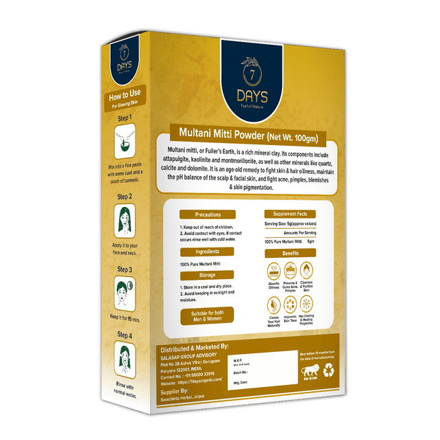 7Days Multani Mitti Powder for Face & Hair - 100 gms