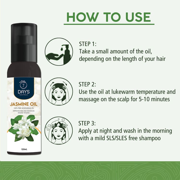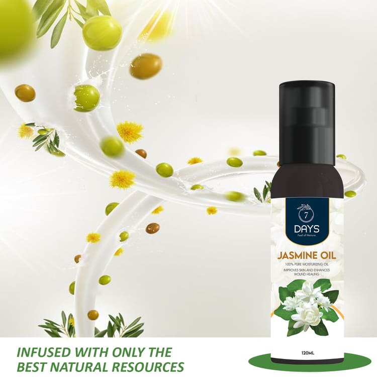 - 7 Days brings to you a unique blend of Jasmine essential oil with other carrier oils for you to reap its benefits daily.