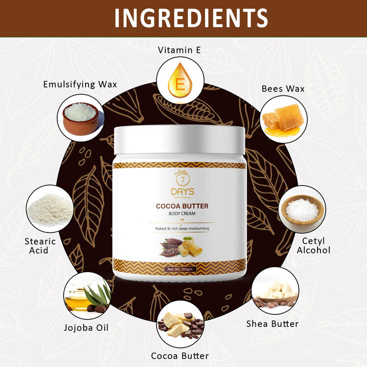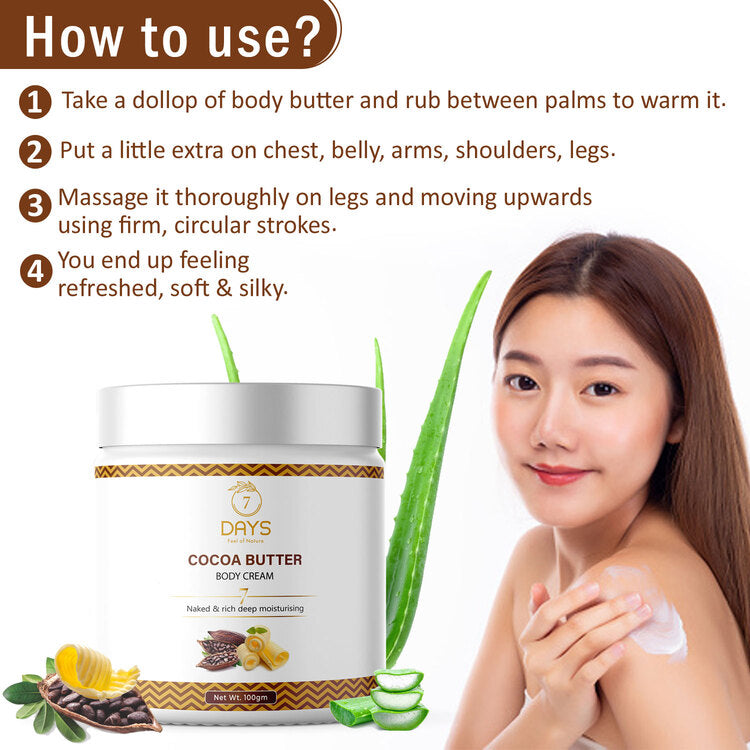 - Forget dry skin and rejoice your senses with the rejuvenating 7daysorganic Cocoa Body Butter.