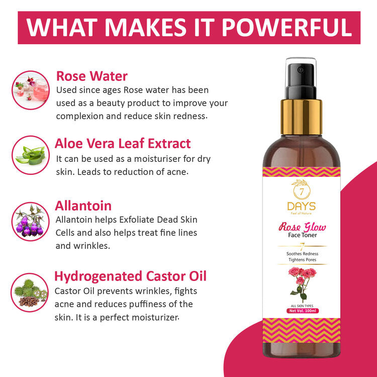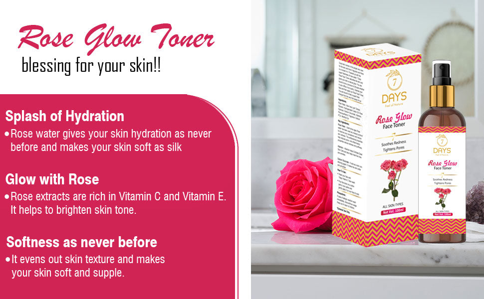- Introducing Rose Glow Water Toner by 7 Days, your key to radiant and healthy Skin.