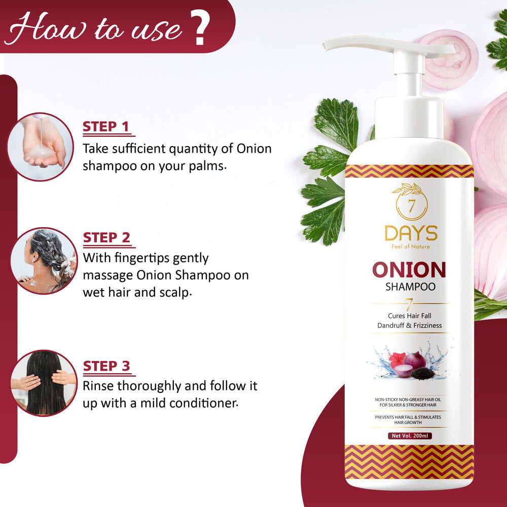 - 7 Days Red Onion Black Seed Oil Hair Growth Shampoo helps combat a number of hair problems.