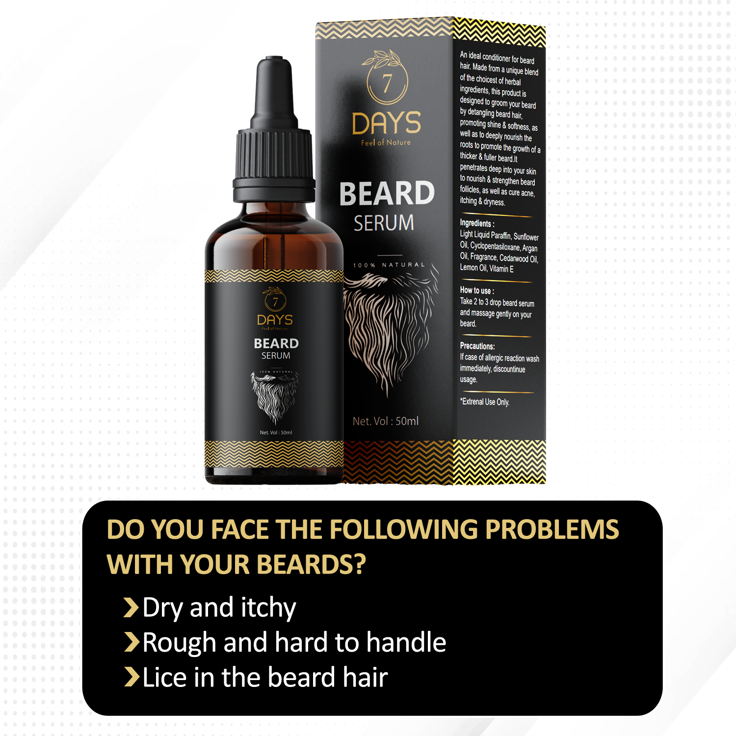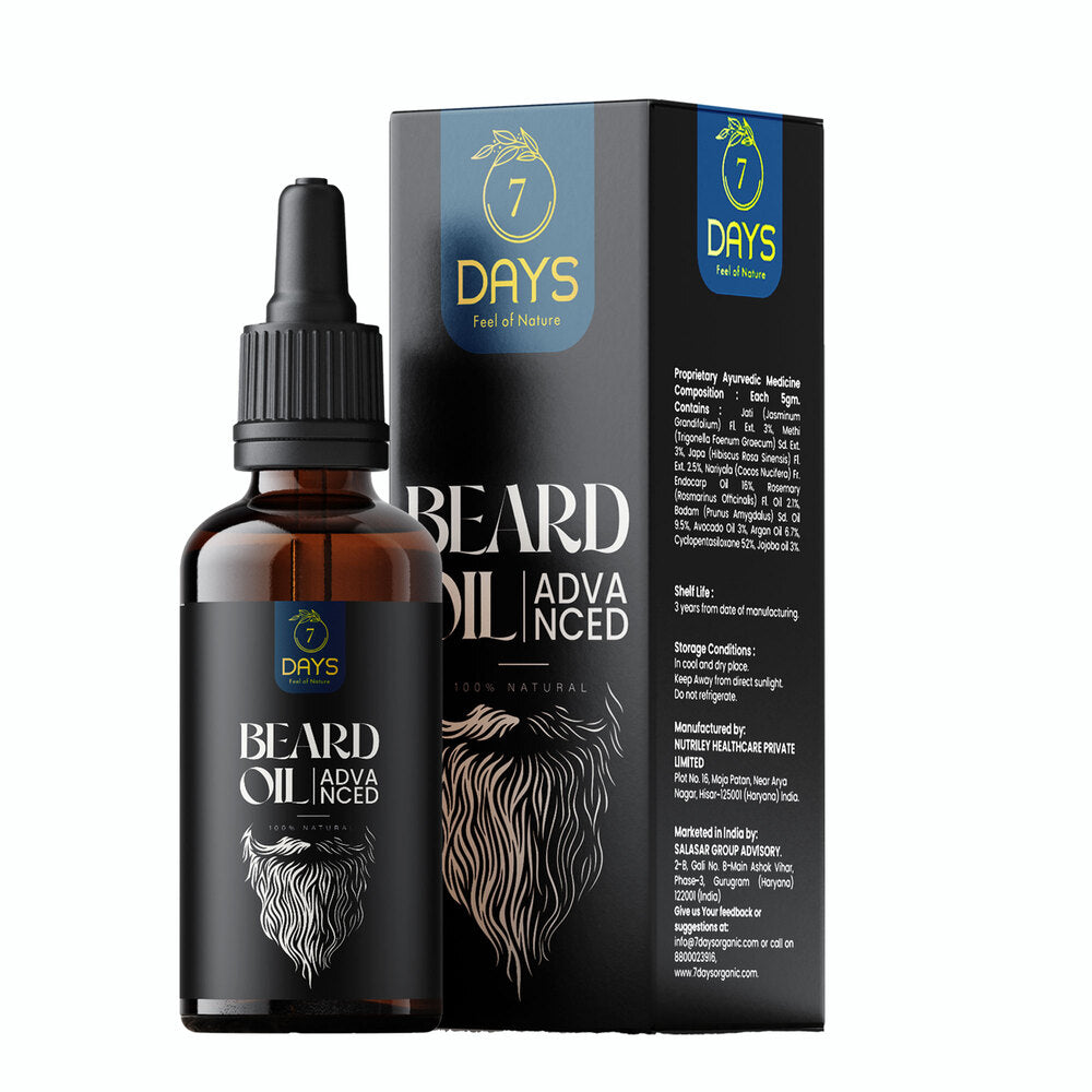 - 7 Days Beard Oil penetrates deep into the follicles of your beard to provide nourishment, thus making your beard more smooth, neat & manageable.