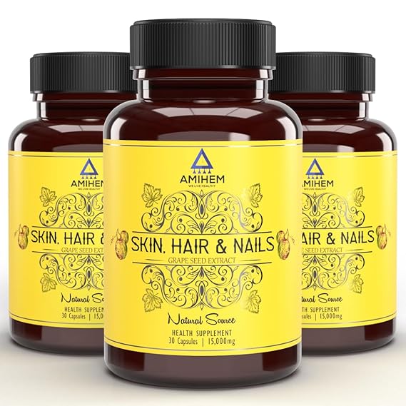 Amihem Grape Seed Extract Capsules | 15000 Mg Per Serving - 30 Capsules (Pack of 3)