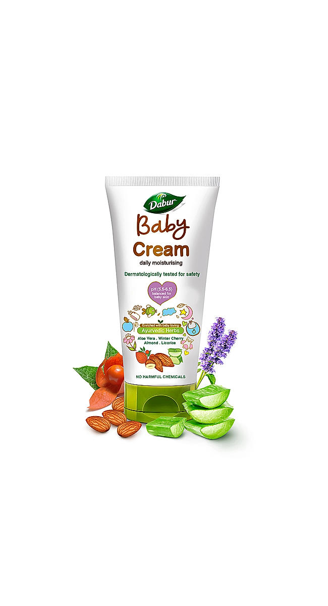 - Dabur Baby Cream is enriched with baby loving ayurvedic herbs and it has been developed to match the pH balance of baby skin.
