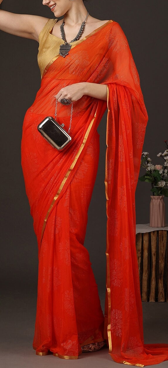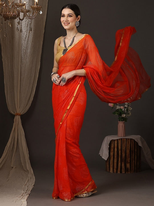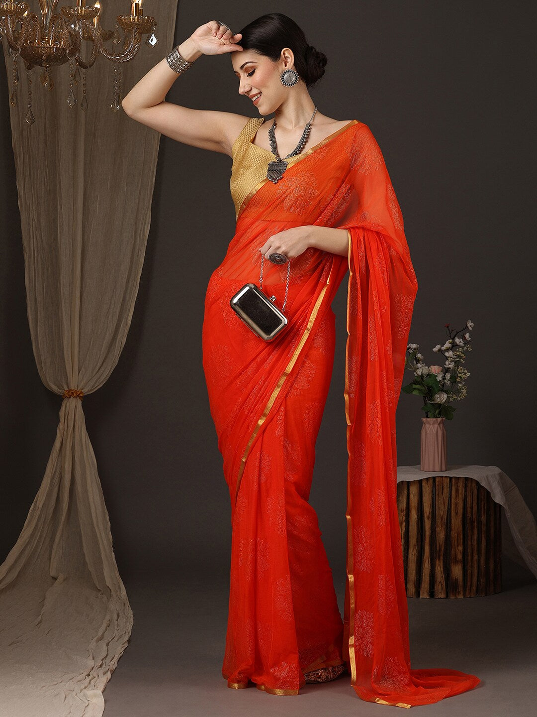 Anouk Floral Embellished Zari Pure Chiffon Saree