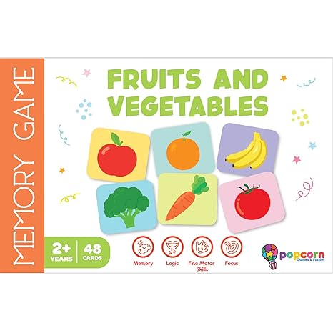 Popcorn Games & Puzzles Memory Game Fruits and Vegetables Board Matching Games Memory Game for Kids Age 2+