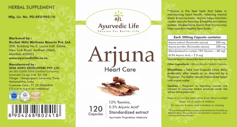 • It is also known to help improve blood circulation to the heart. Ayurvedic life Terminalia Arjuna contains 500mg Pure Extract and Powder.