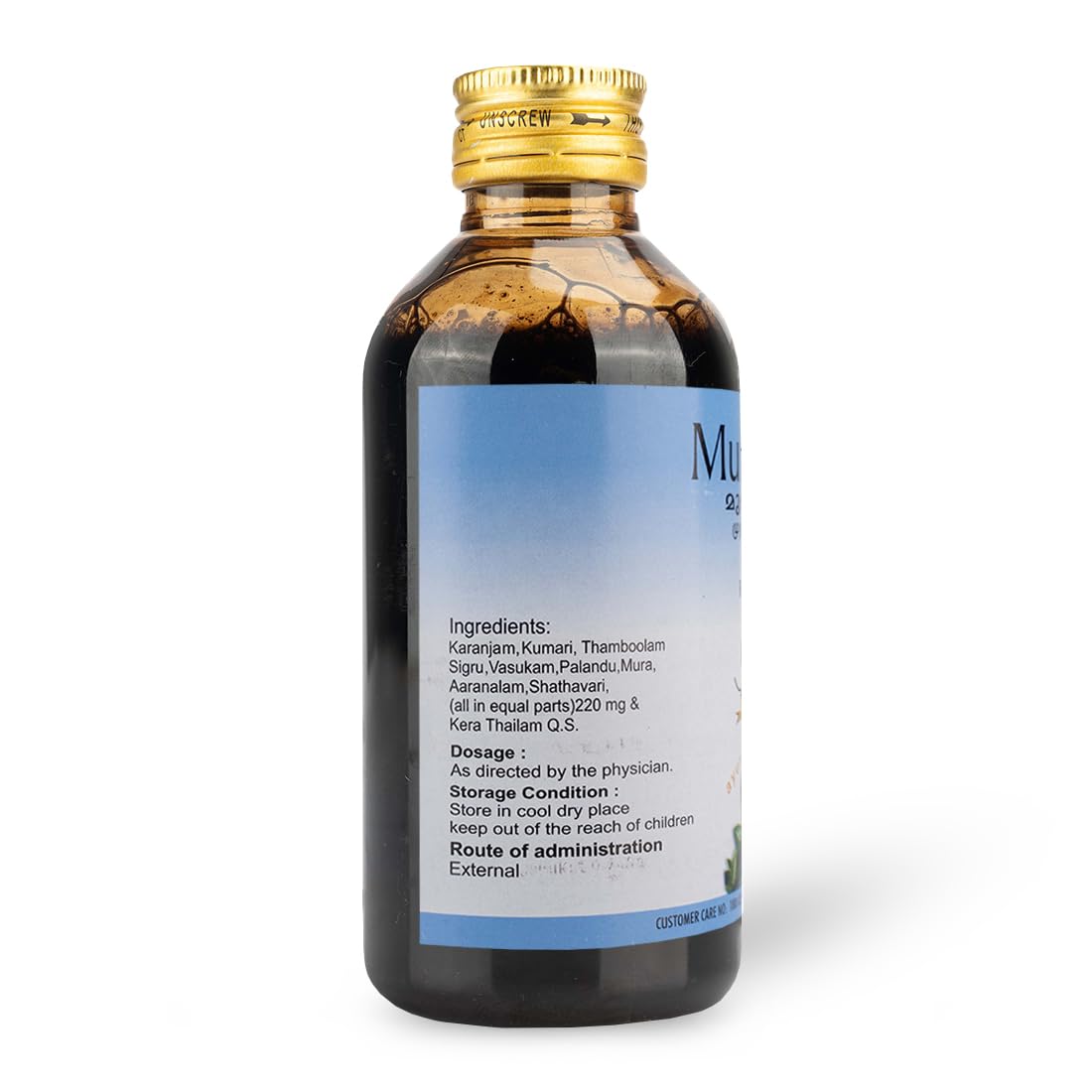 • Murivenna oil has coconut oil as its base known for its healing and nourishing properties Additionally, the product has Aloe and Asparagus in it, which are known for their ability to help relieve pain, treatement of buns and reduces swelling in the body