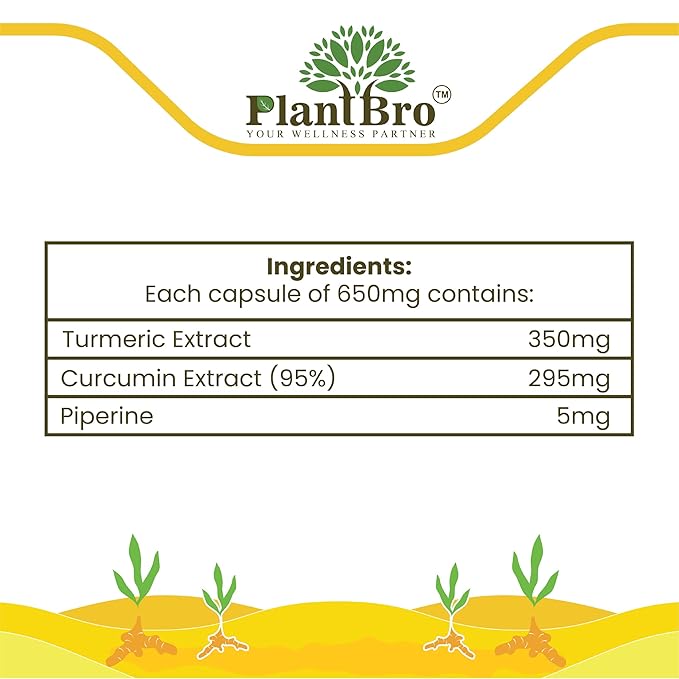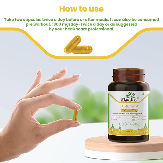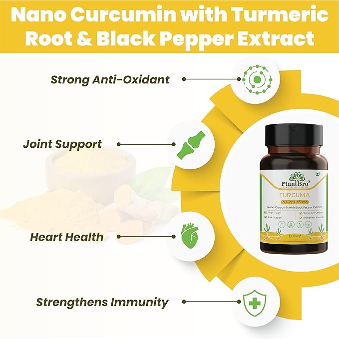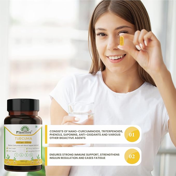 PlantBro Turcuma, Nano Turmeric Extract With Turmeric Root & Black Pepper Extract, Boost Immunity - 60 Capsules