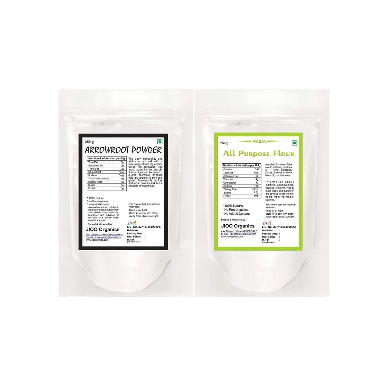 Jioo Organics Arrowroot Powder and All Purpose Flour Maida Flour Combo