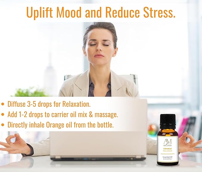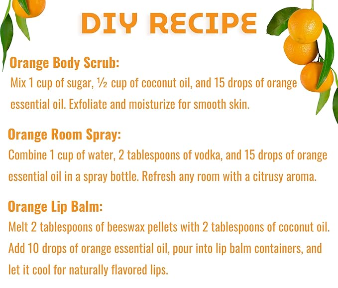 • Uplifting Aroma: Orange Essential oil offers a delightful and refreshing citrus scent that uplifts the mood and creates a refreshing atmosphere, providing an instant boost of positivity.