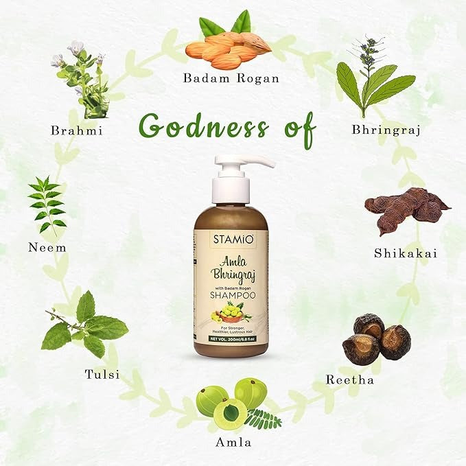 Stamio Amla Bhringraj Shampoo - 200 ml (Pack of 3)
