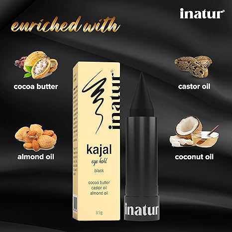 • Inatur Kajal offers an intense color that defines your eyes beautifully. Its long-lasting formula ensures a stunning look that stays put all day, eliminating the need for frequent touch-ups.