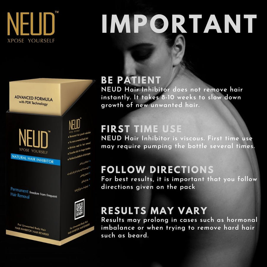 - Neud natural hair inhibitor is not a depilatory cream, so it does not remove hair.