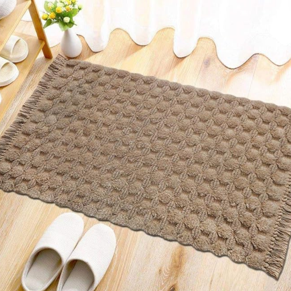 - INCREDIBLE FEATURES: The Designer Carpets are versatile enough to be used in any space you see fit. These floor mats come in a pack of 1 and can be used as kitchen mats, or living room door mats, while they are also water absorbent mats for bathrooms, providing incredible versatility and useful features for a lovely set. The Door Carpets require less maintenance and can be machine washed and dried, while being made with dried yarn they are less prone to shrinking.