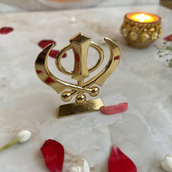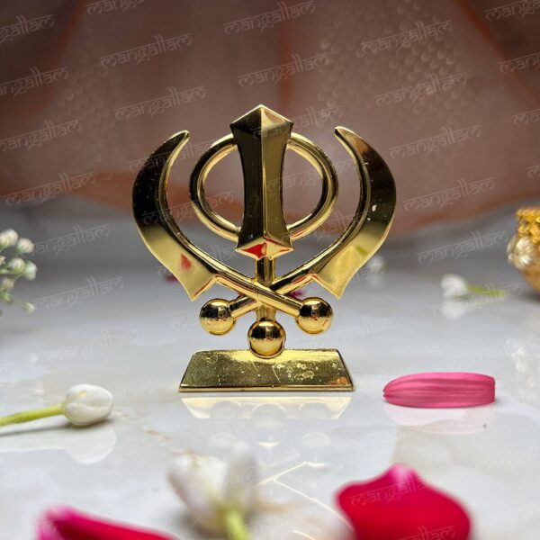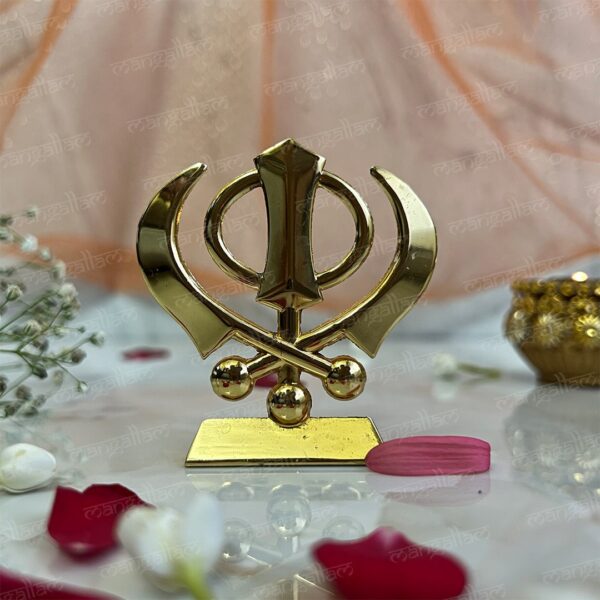 Svastika Khanda Sahib Golden Metal Idol for Car Dashboard