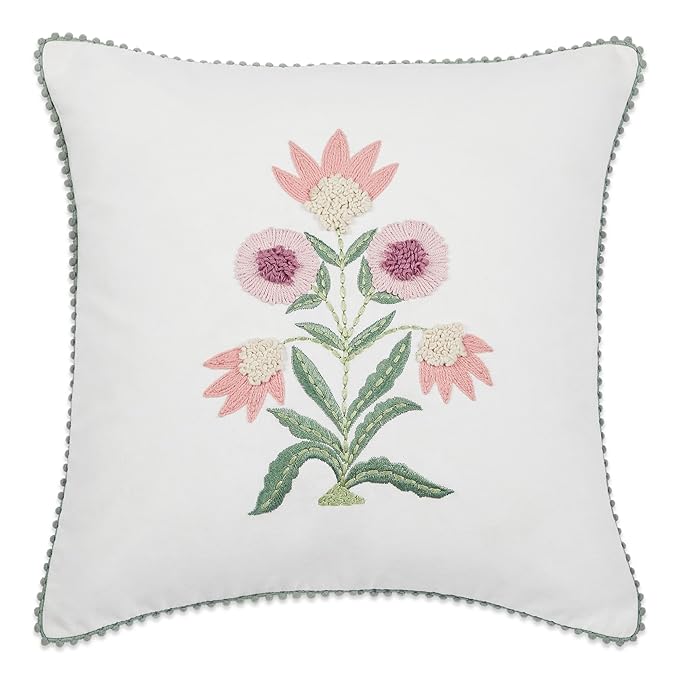 Haus & kinder Decorative Embroidered Cushion Cover | Colour Lone Flower
