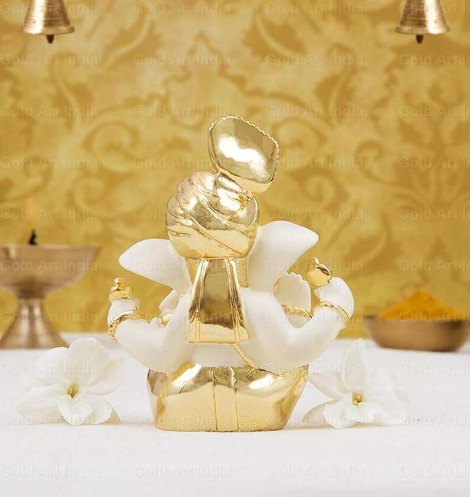 Gold Art India Ceramic Ganesh Idol For Car Dashboard Ganesha Murti For Home Decor