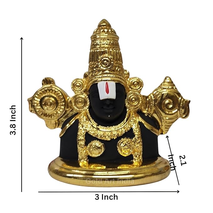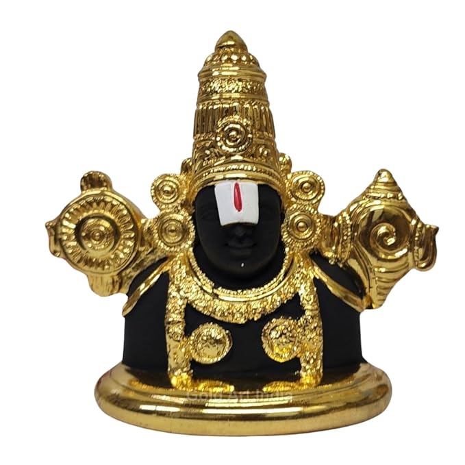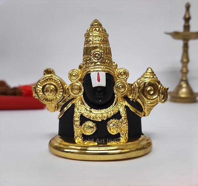 • Exquisite Design: Gold-plated Lord Balaji bust with a black terracotta finish, symbolizing Vishnu Ji (Venkateswara Swamy).