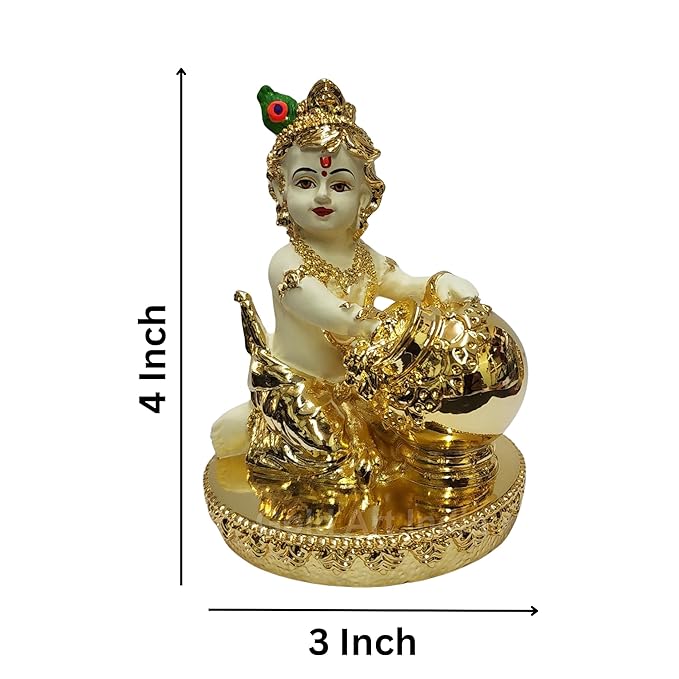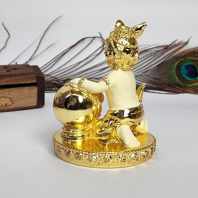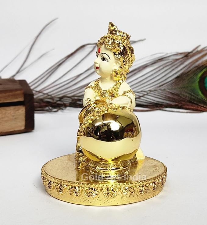• Gold Art India offers a stunning Makhan Krishna Murti with Gold plating and a off white terracotta body color.