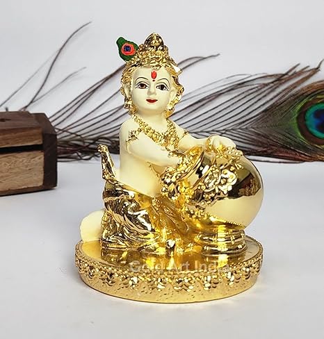 Gold Art India Makhan Krishna Krishna Idol For Home Decor Laddu Gopal Murti For Gifting Two Tone