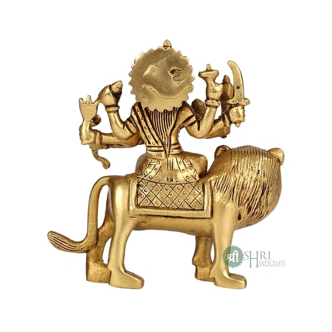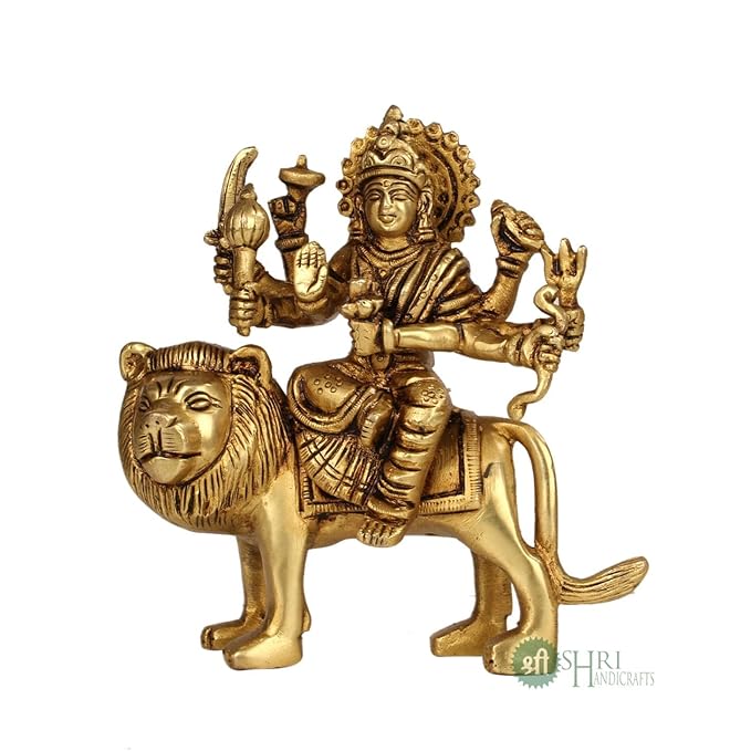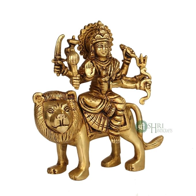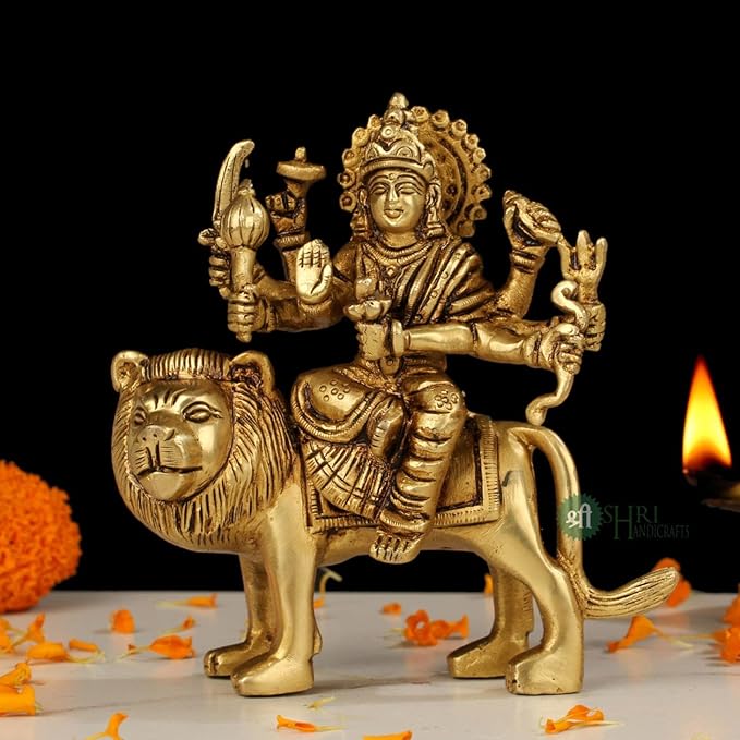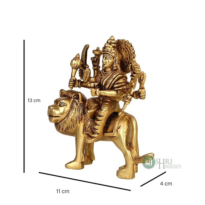 Indicast Brass Maa Durga Idol Sitting on Lion Maa Sherwali Murti for Home Mandir Office Navratra Puja | Height 13 Cms