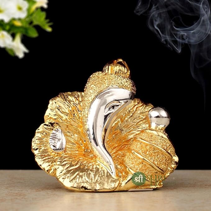 Indicast Lord Ganesha Idol Gold & Silver Plated Murti for Good Luck & Success Living Room Home and Office Decor & Gifts