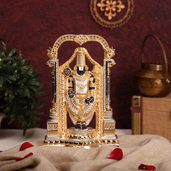 • In Hinduism, Lord Venkateswara is known as the preserver and protector of the universe, and he is revered by millions of devotees around the world. The Gold and Silver Coated Venkateswara Idol is a highly esteemed and adored product that is deeply meaningful to those who worship this divine deity.