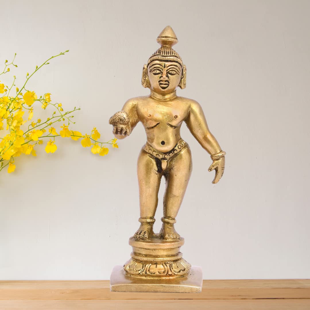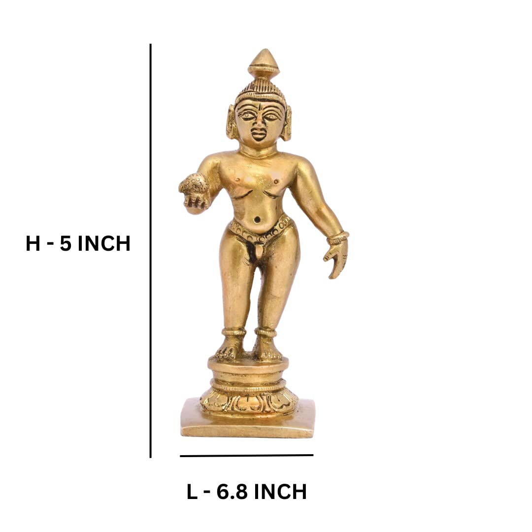 The Advitya Brass Laddu Bal Gopal Standing Krishna Laddoo Murti for Puja | Banke Bihari Idol for Home Temple Mandir Devkin Thakurji Statue Sculpture