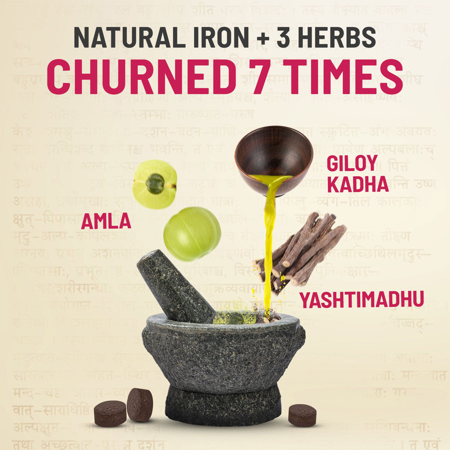 - Gynoveda Iron & Folic Acid Tablet (60 Each) is an Ayurvedic tablet with a powerful combination of four potent herbs- natural iron, amla, yashtimadhu, and giloy that help boost strength and energy.