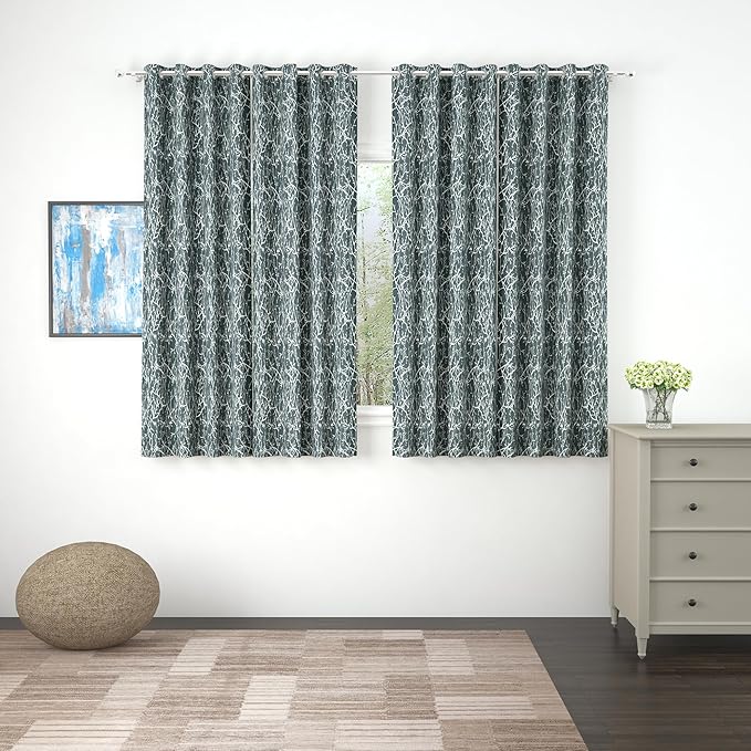 • Package Contents : Pack of 1 Azurio Window Curtains | Dimension (Size) : 116 x 152 cm or 46 x 60 inches, 400 GSM, Pattern : Branches, Material : Jacquard, Color : Grey | Story@Home blackout curtains 5 feet for window ensure 100% opacity, curtain 5 feet long making ideal dark curtains for bedroom no light, enhancing your sleep quality & providing complete privacy, window parda is ideal use for home decor items, home decoration items for living room, room decoration items for bedroom, office curtains for window & home furnishing