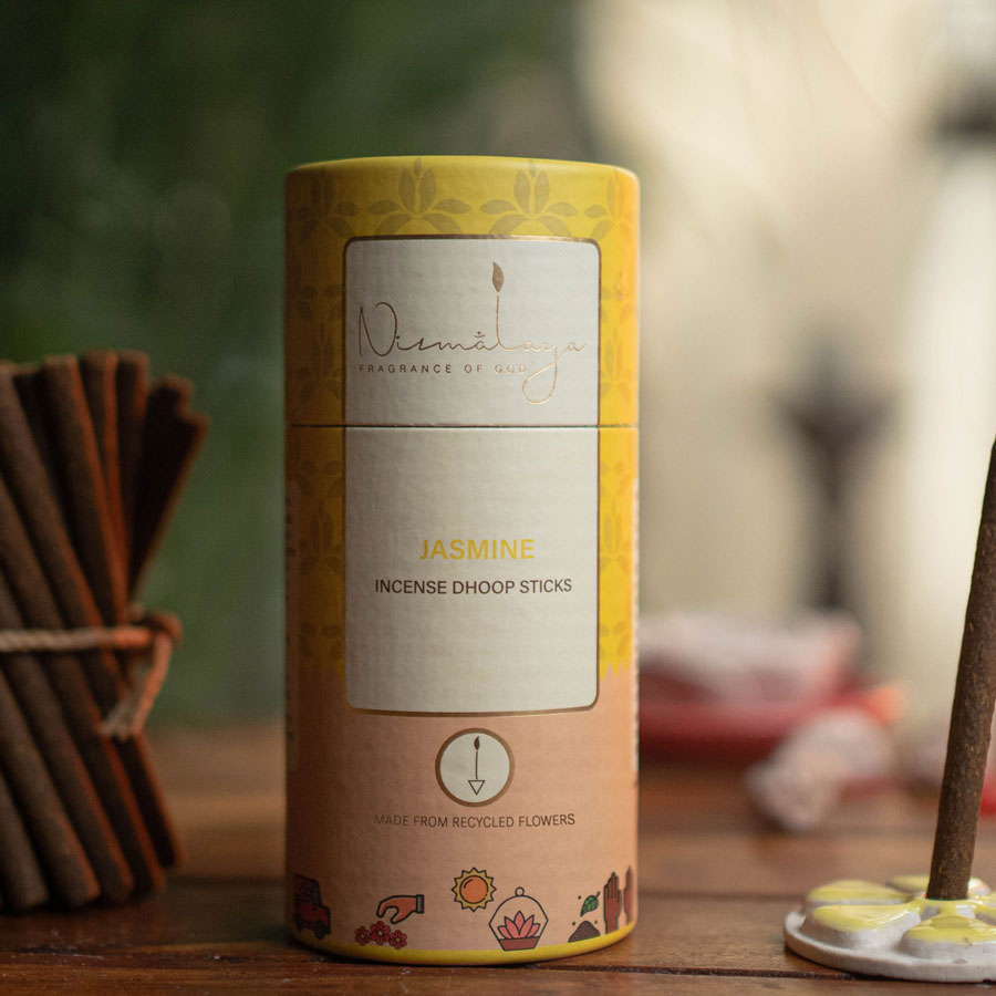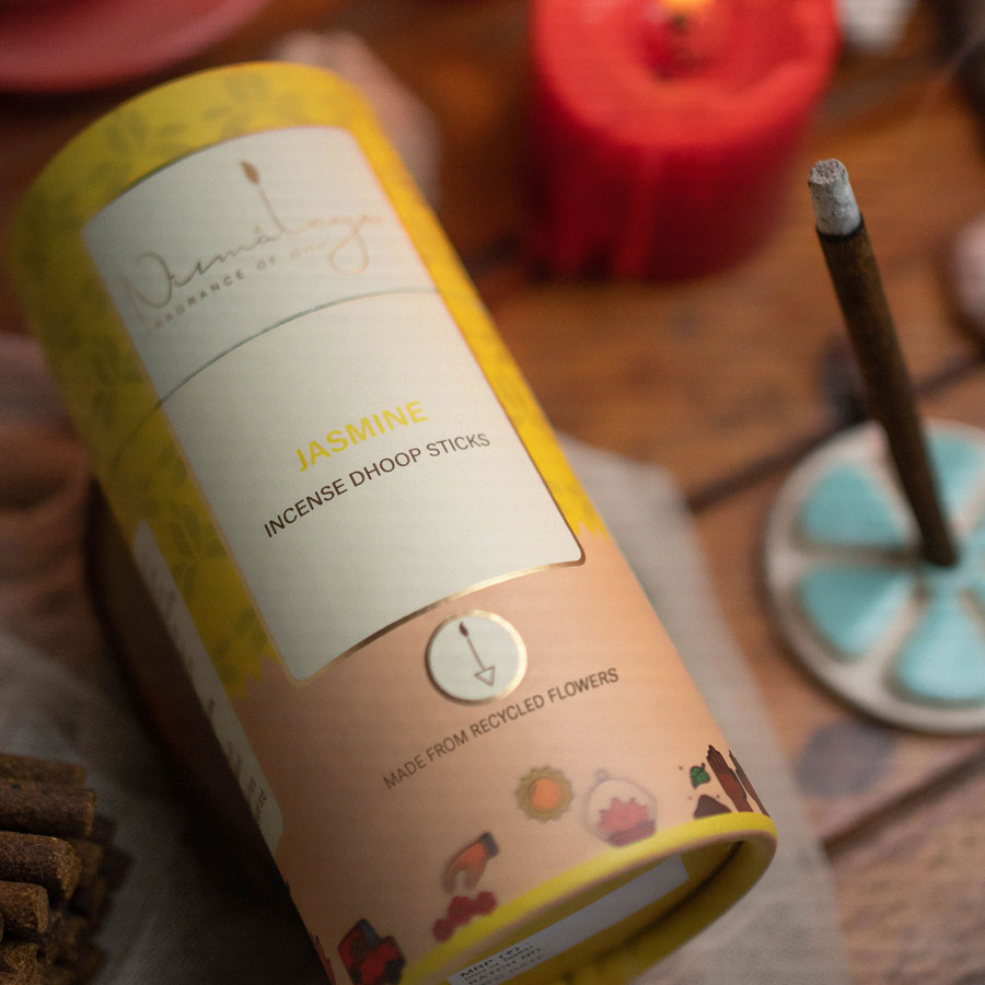- Take a moment to slow down and embrace peace with a rich aroma of Jasmine dhoop sticks made from recycled flowers and dipped in pure essential oils that are crafted to promote a happy mood and a calm mind.