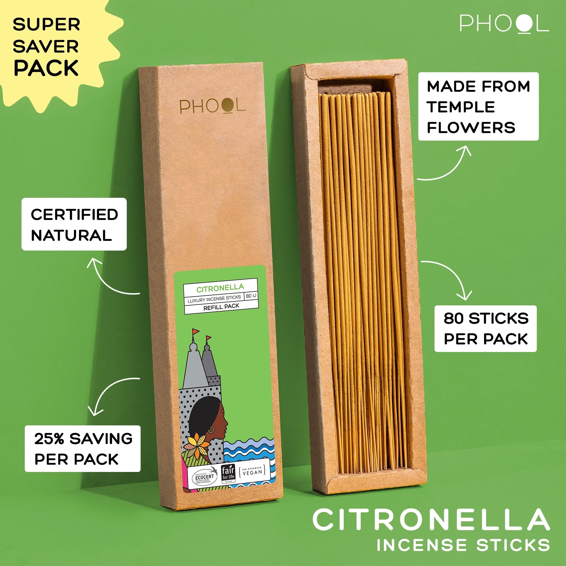 Phool Natural Incense Sticks Refill Pack Citronella - 80 Sticks