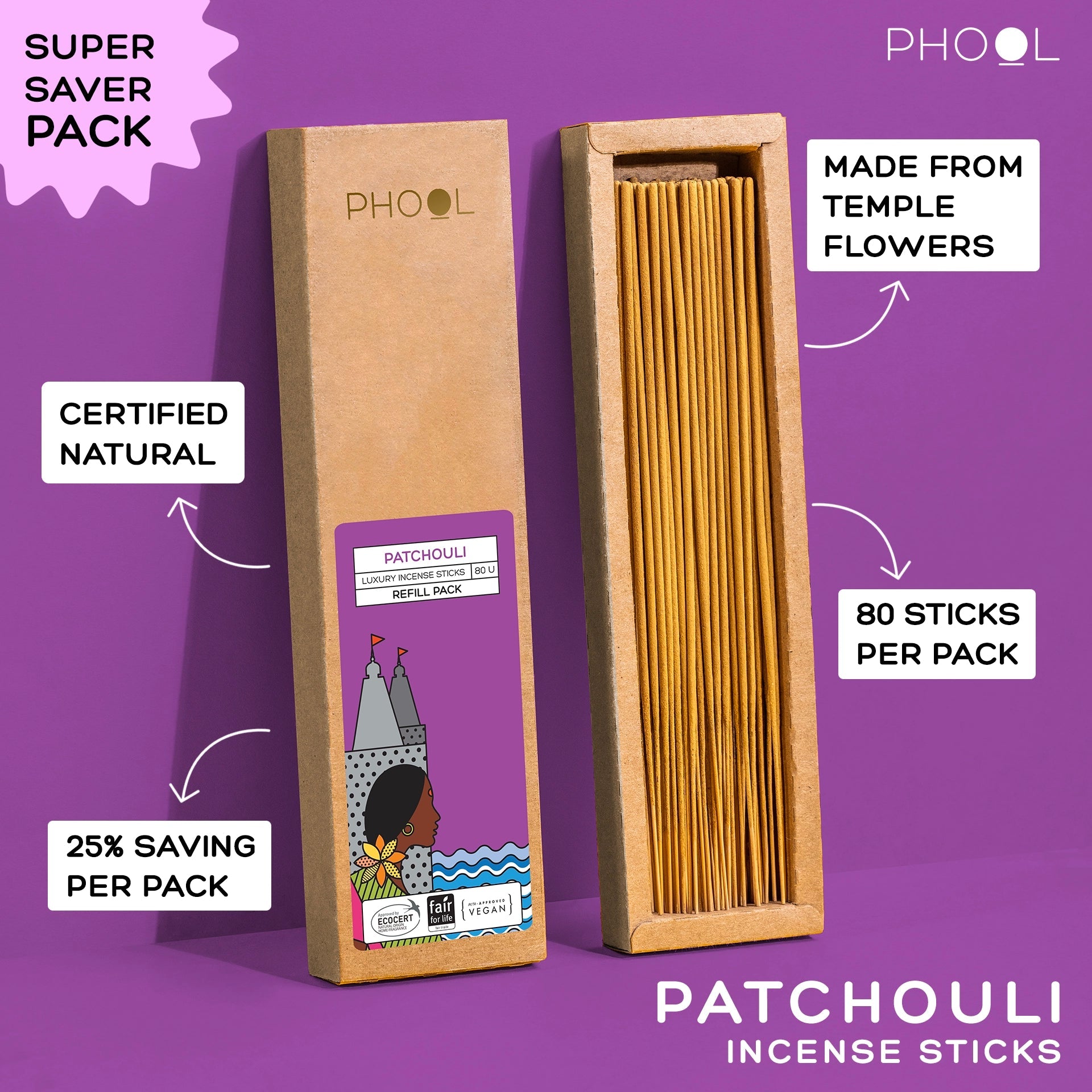 Phool Natural Incense Sticks Refill Pack Patchouli - 80 Sticks