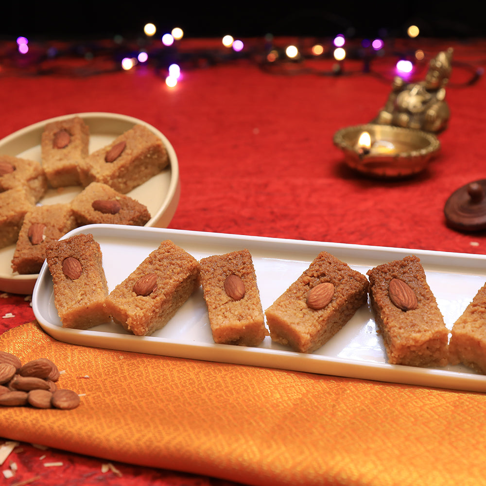 • Considered as the sweet of festivals in India, our ajmeer kalakand presents an abundance of choicest ingredients milk, sugar, ghee, lemon and cardamom.