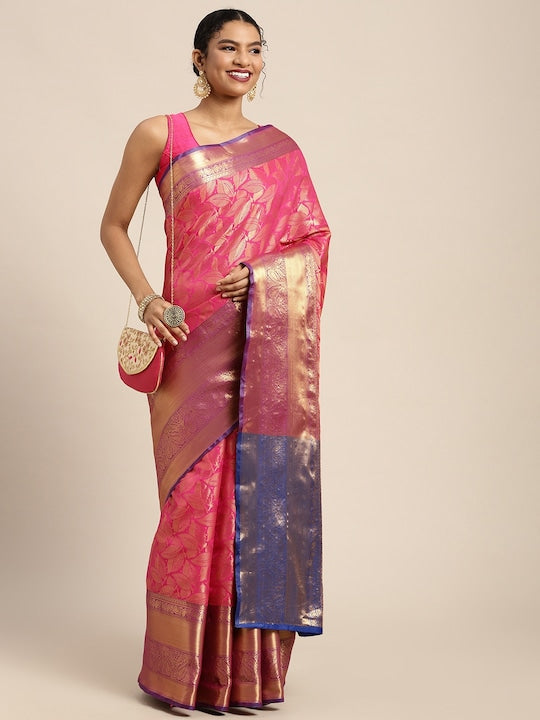 Silk Land Pink & Golden Floral Zari Banarasi Saree