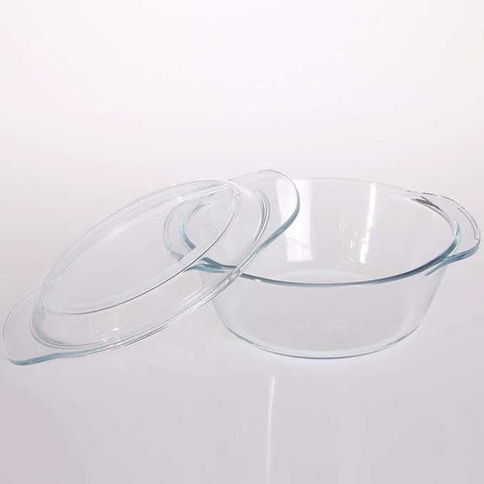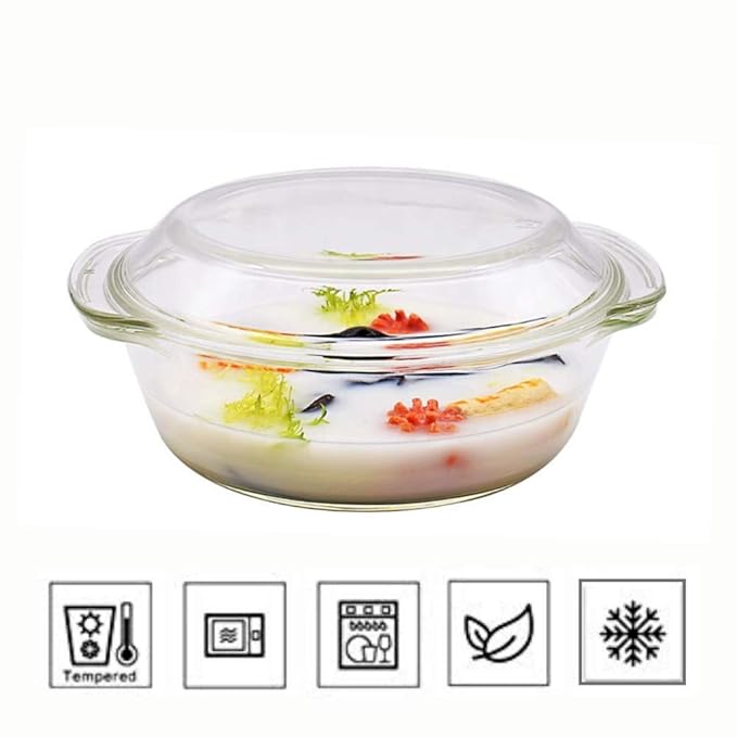 Femora Borosilicate Serving Bowl | Glass Casserole Set, Glass Bowl With Lid, Microwave Safe Bowl Set | 1550 Ml