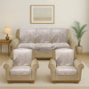 Cloth Fusion Italian Velvet Sofa Cover 5 Seater Set Perfect Floral Embossed Sofa Cover 3 Seater and 2 Seater Rose Beige