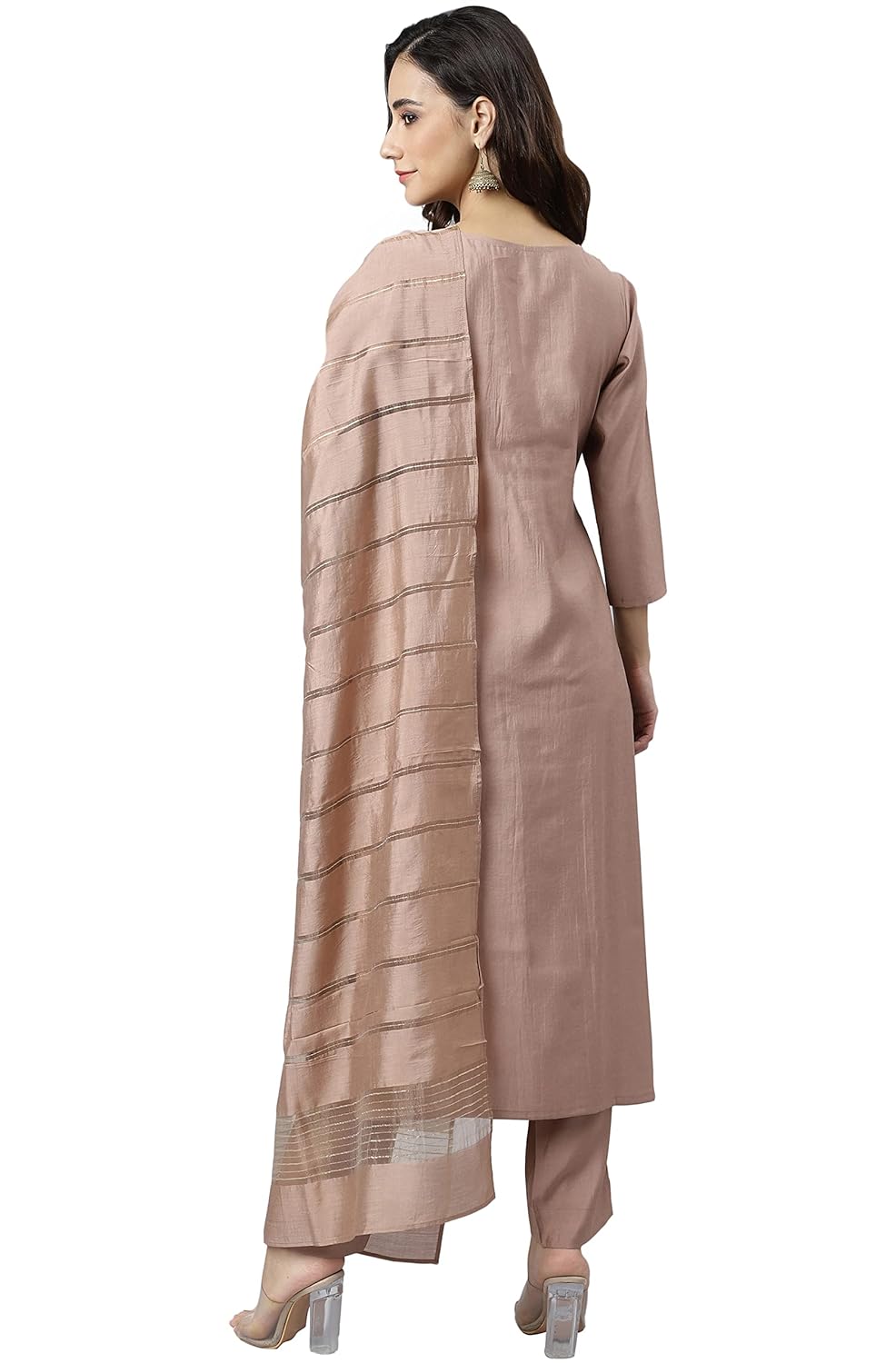 • Embrace the festive season in style with this elegant Dusty Rose Kurta Set. This ensemble includes a Kurta, Pant, and Dupatta.