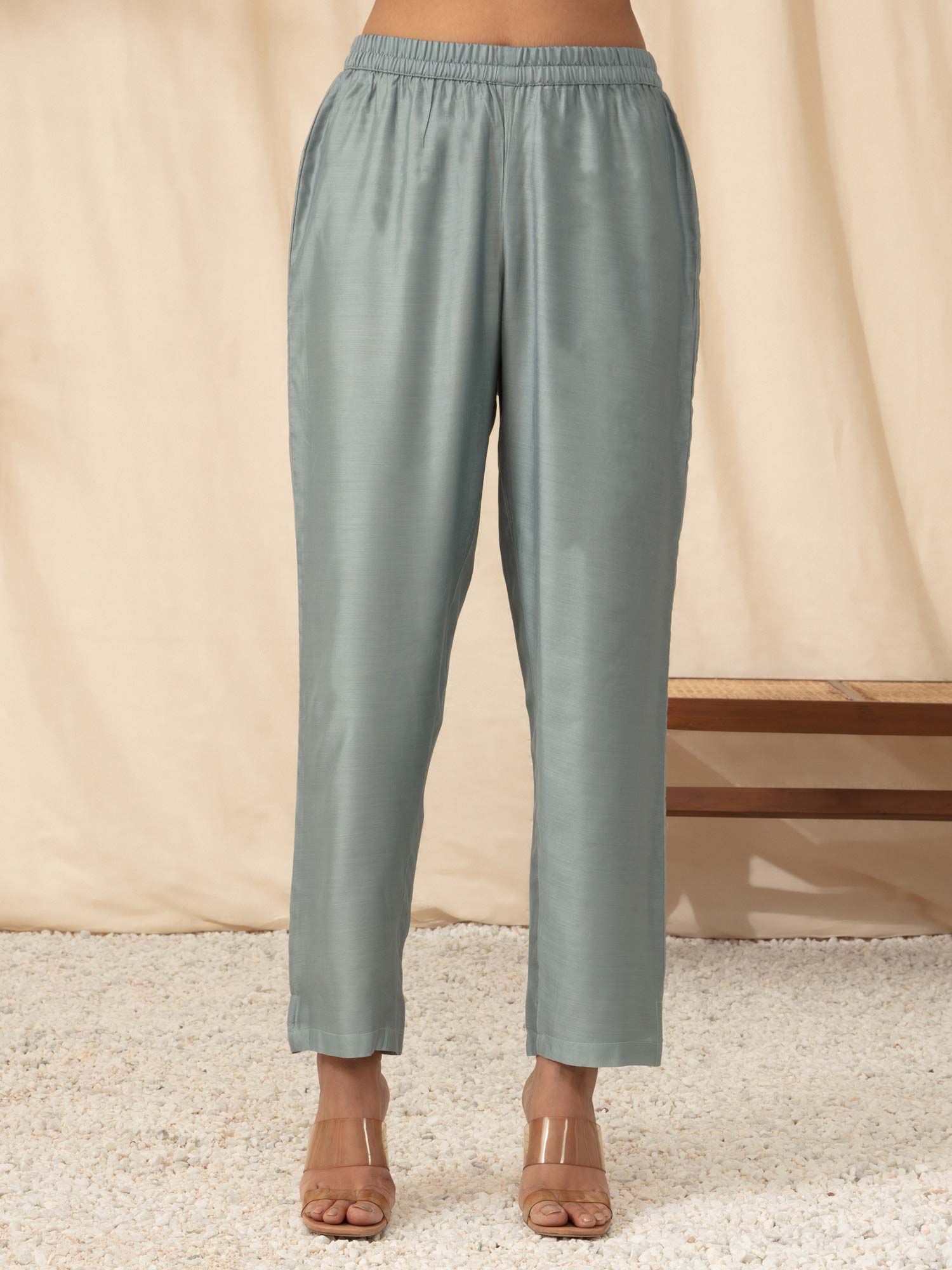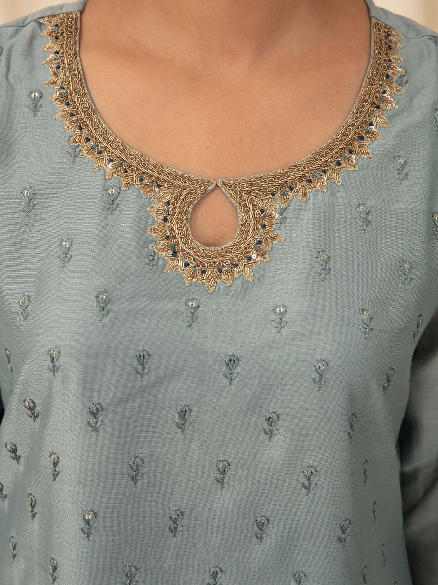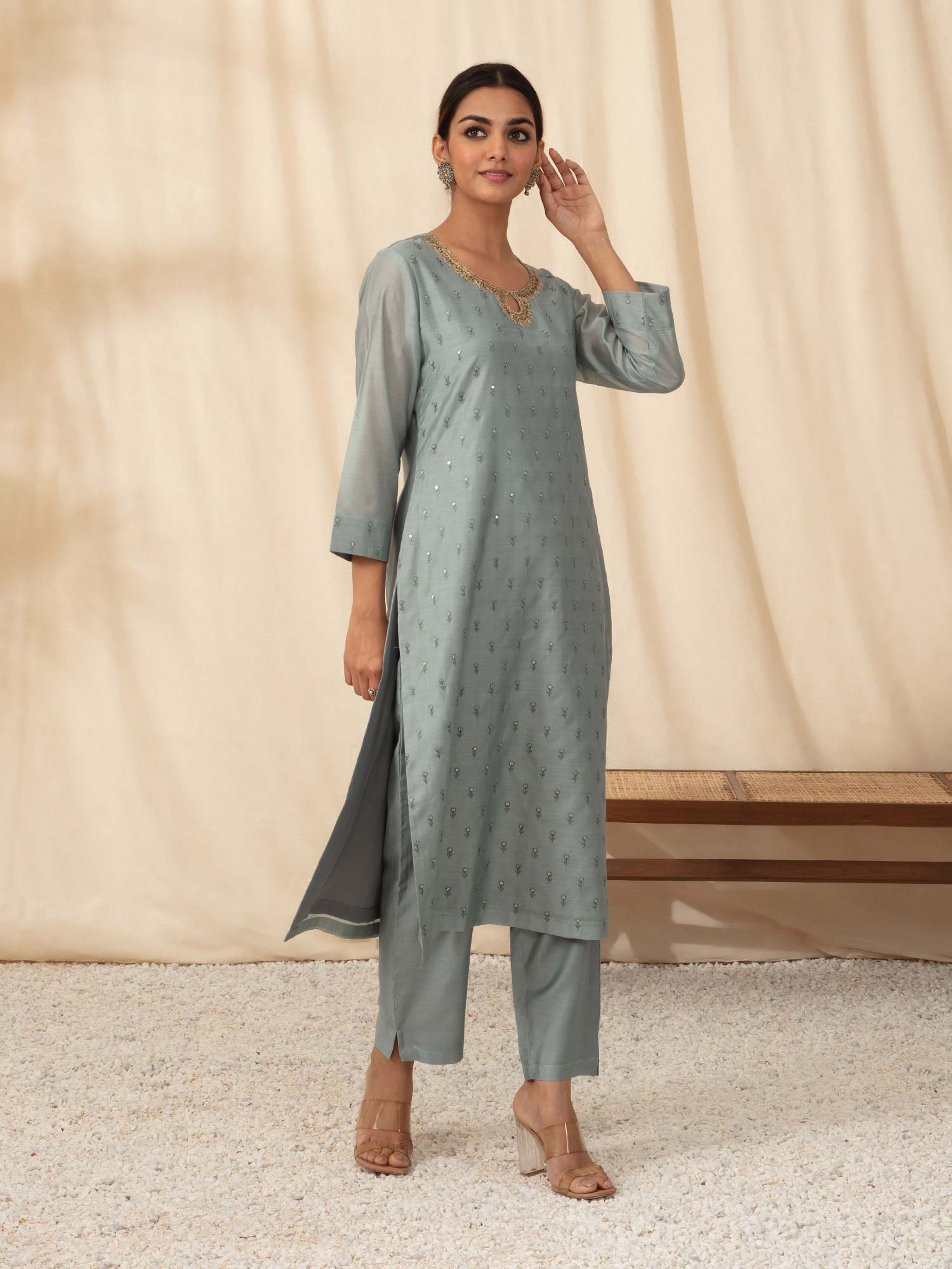 Likha Grey Embroidered Kurta Pant Dupatta LIKSKD56 (Set of 3)