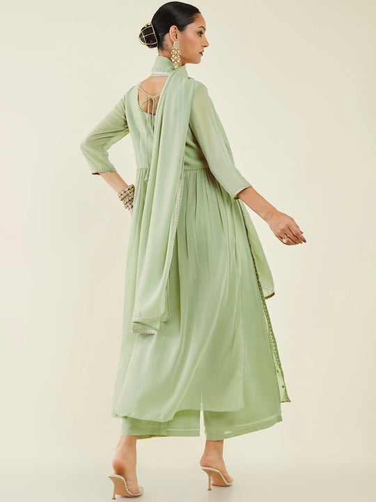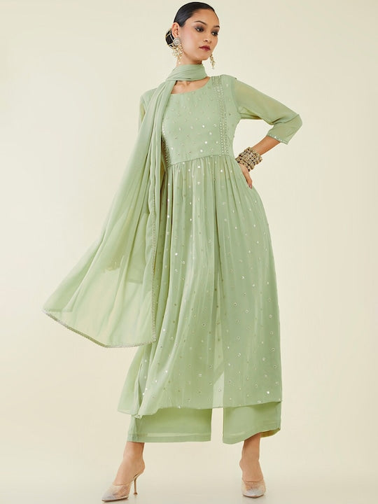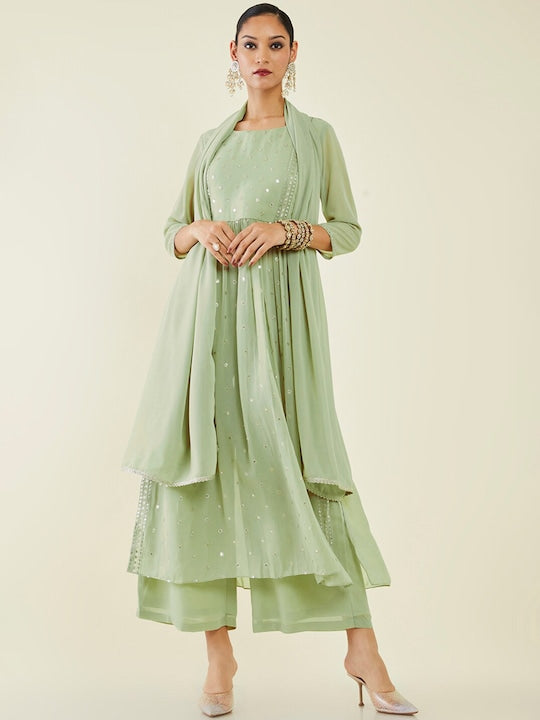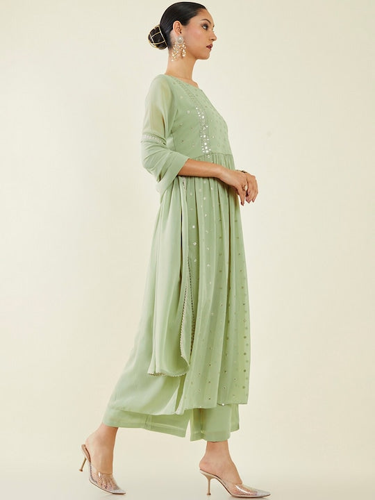 Soch Ethnic Motifs Embroidered Mirror Work Kurta with Palazzos & Dupatta